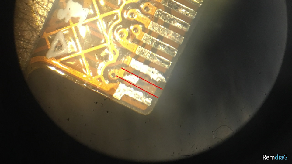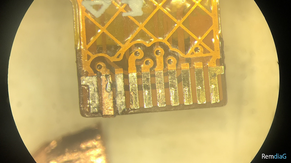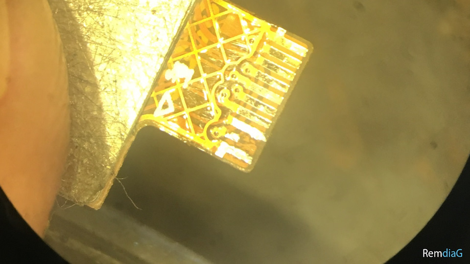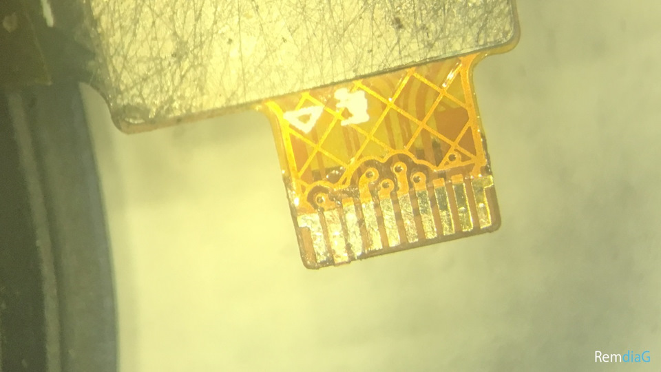 Приветствую. Планшет Lenovo A3500F — был чем-то залит. Самым уязвимым оказался шлейф тачскрина — один пин (контактный вывод) полностью растворился под воздействием напряжения питания контроллера тачскрина и жидкости, которая попала внутрь корпуса планшета. Выгдядело это примерно так: