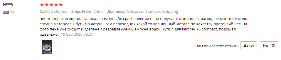 В том же магазине была отдельно пенная насадка за 2400р, но покопавшись на Али выбрал сабж из за доставки из России, и не прогадал доставка в Ниж.Новгород заняла 2 дня, трек не отлеживался.