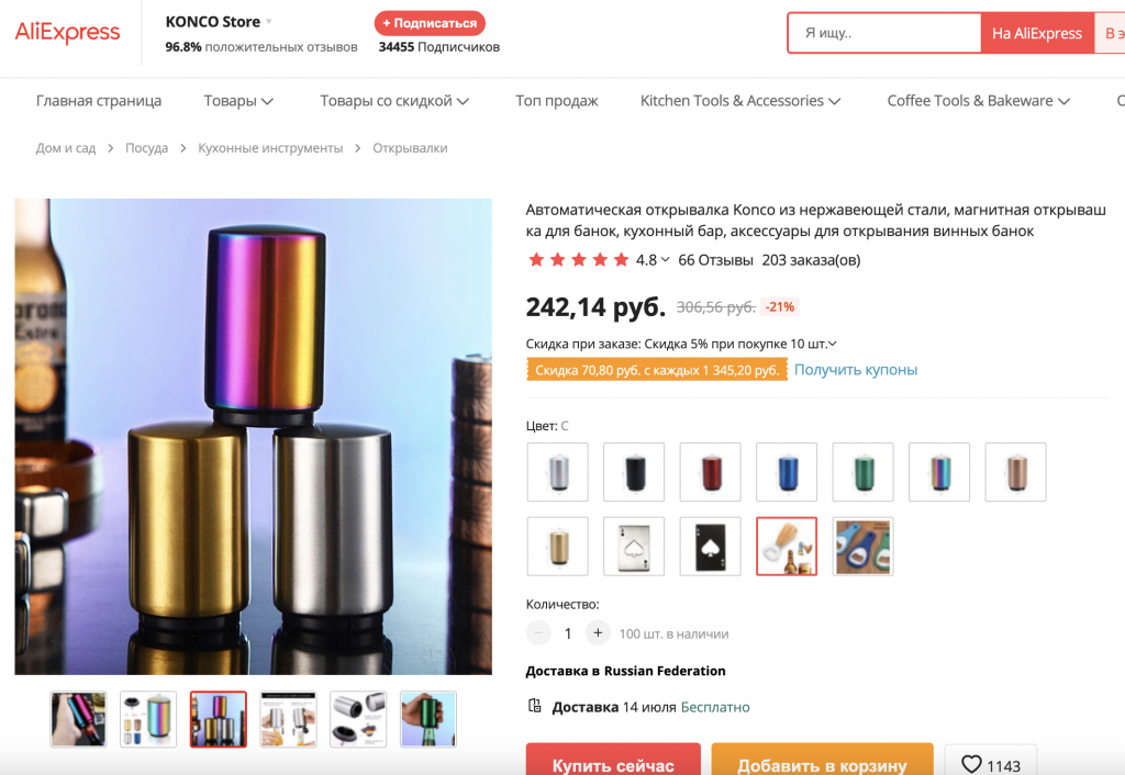 Из отзывов: «Открывашка свою функцию выполняет, только с торца немножко мнёт пробку. Устраивает на 100%, так как открывает и неоткрываемые вручную пробки».