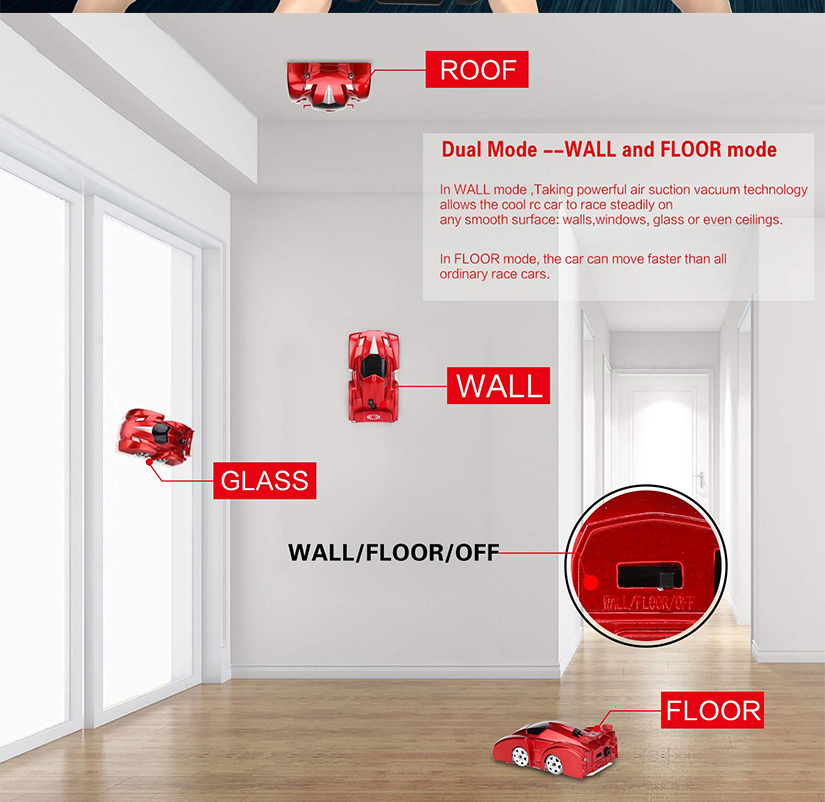 Перед вами что-то невообразимое. Бывают машины гоночные, бывают такие, которые умеют прыгать, некоторые не боятся бездорожья, а другие оснащены камерами, позволяя почувствовать себя за рулём болида. Но ни одна из других машин не умеет ездить по стенам. Для того, чтобы опробовать её необычный функционал, вам нужно только найти ровную поверхность и запустить своё авто вверх.