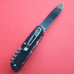 В отличие от Victorinox нож имеет плашки из G10 с с агрессивным рельефом. Также у ножа имеется клипса, что расширяет возможности ношения.