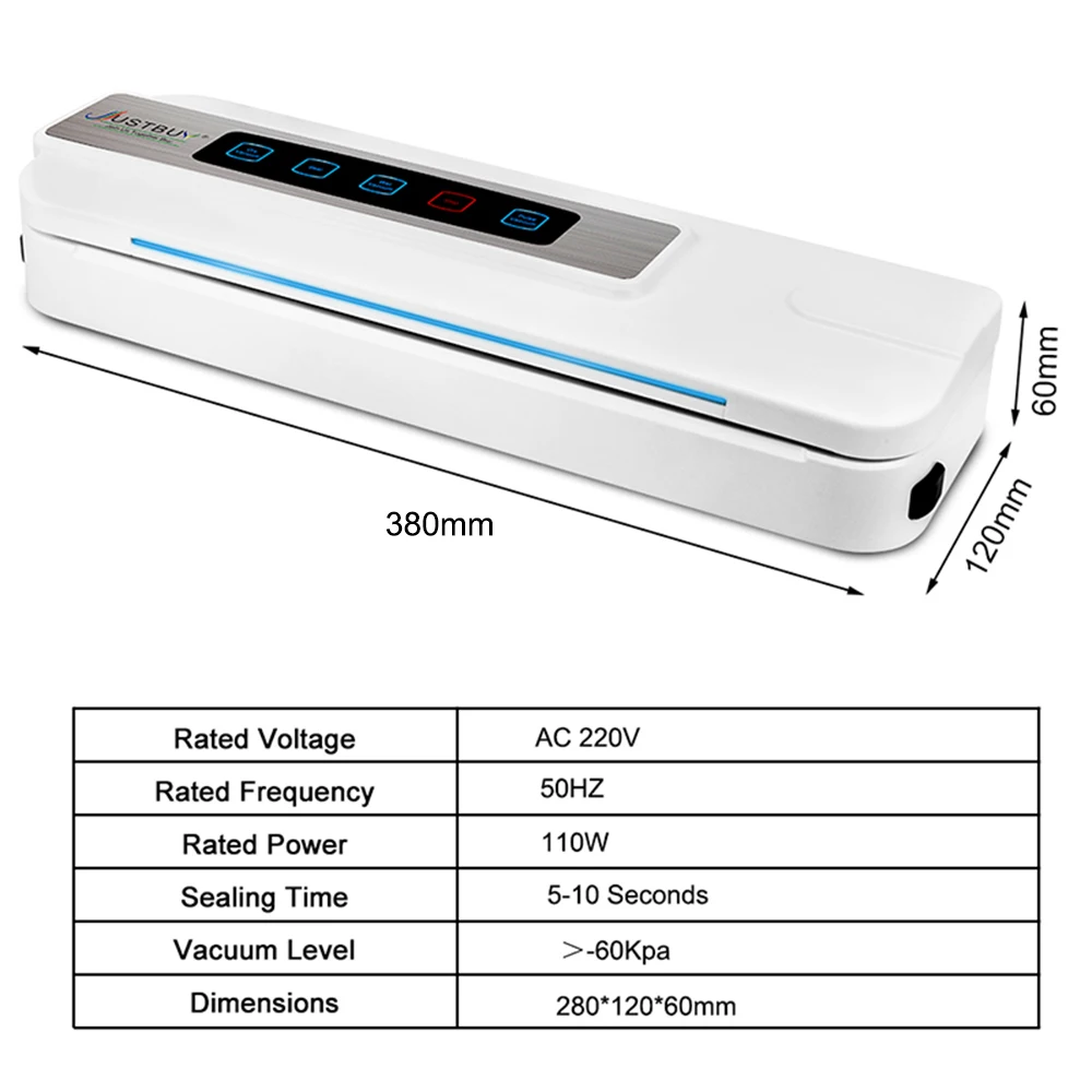 Также в приборе реализована функция откачивания воздуха из контейнеров при помощи шланга. Устройство имеет ширину 38 см, что позволяет применять для вакуумирования пакеты стандартных размеров. Есть возможность использовать упаковку в виде рулона и делать двойной сварной шов, чтобы исключить риск разгерметизации.