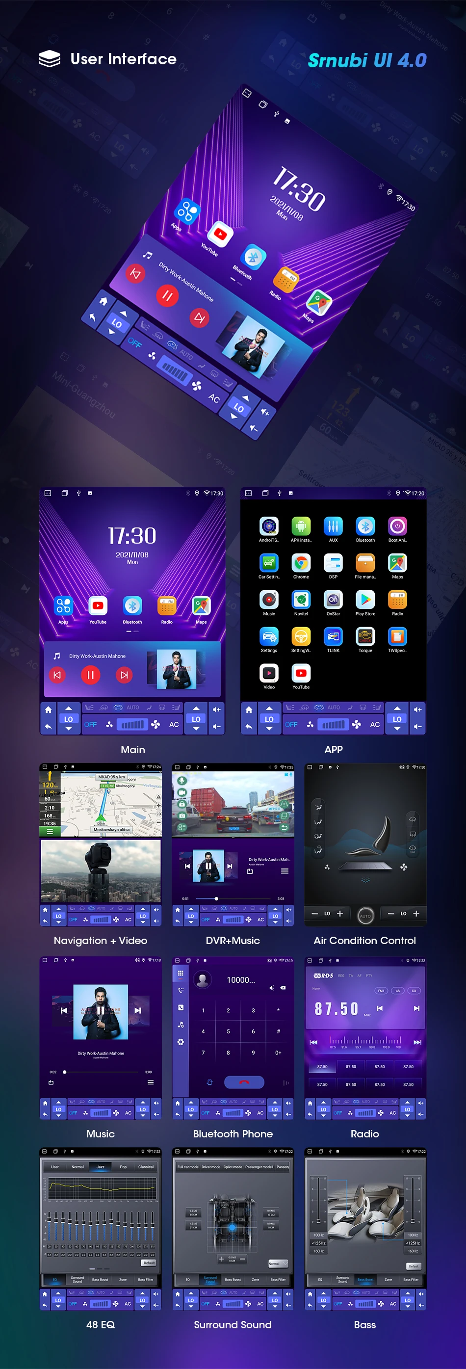Стерео в стиле Srnubi, новый язык дизайна UI 4,0 принят, чтобы сделать вождение умным, технологическим вождением и вождением безопасным.