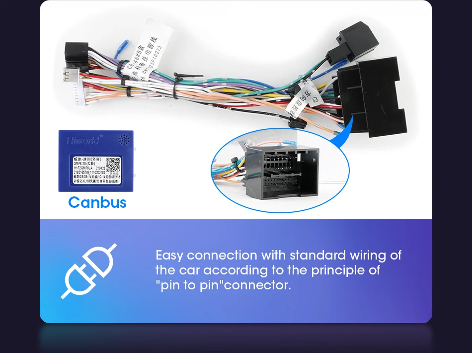 В соответствии с принципом «штыревого» разъема, легко подключить к автомобильной стандартной проводке.Поставляется с кабелем Canbus, который полностью адаптирован к оригинальному автомобильному усилителю мощности и управлению рулевым колесом, а также к оригинальному автомобильному кондиционеру, оригинальным автомобильным датчикам и другим оригинальным функциям автомобиля