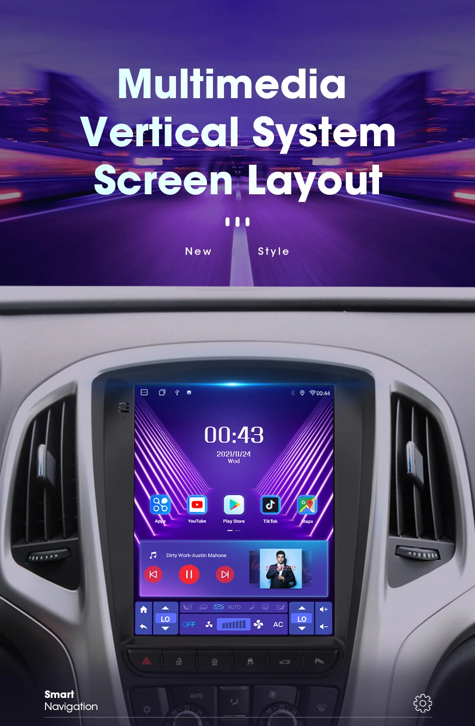 Штатная магнитола для Opel Astra J 2010-2015 — Carmedia ZF-1227-DSP («Тесла-Стиль») на Android 9, 6-ТУРБО ядер, 4ГБ-64ГБ