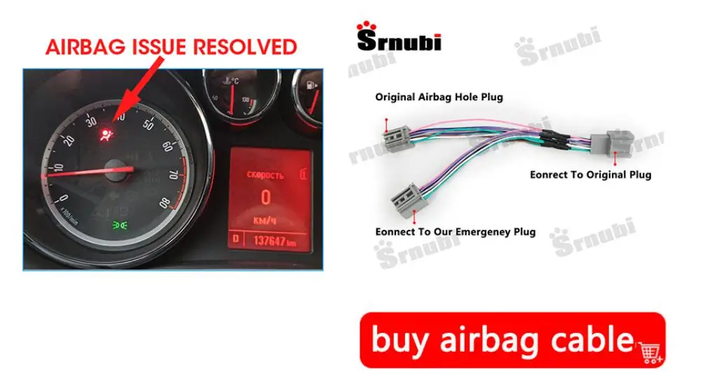 Примечание: после установки радио на некоторых моделях светильник подушки безопасности предупредит. Пожалуйста, нажмите кнопку «купить кабель подушки безопасности» ниже, чтобы купить кабель интерфейса подушки безопасности, чтобы решить проблему.