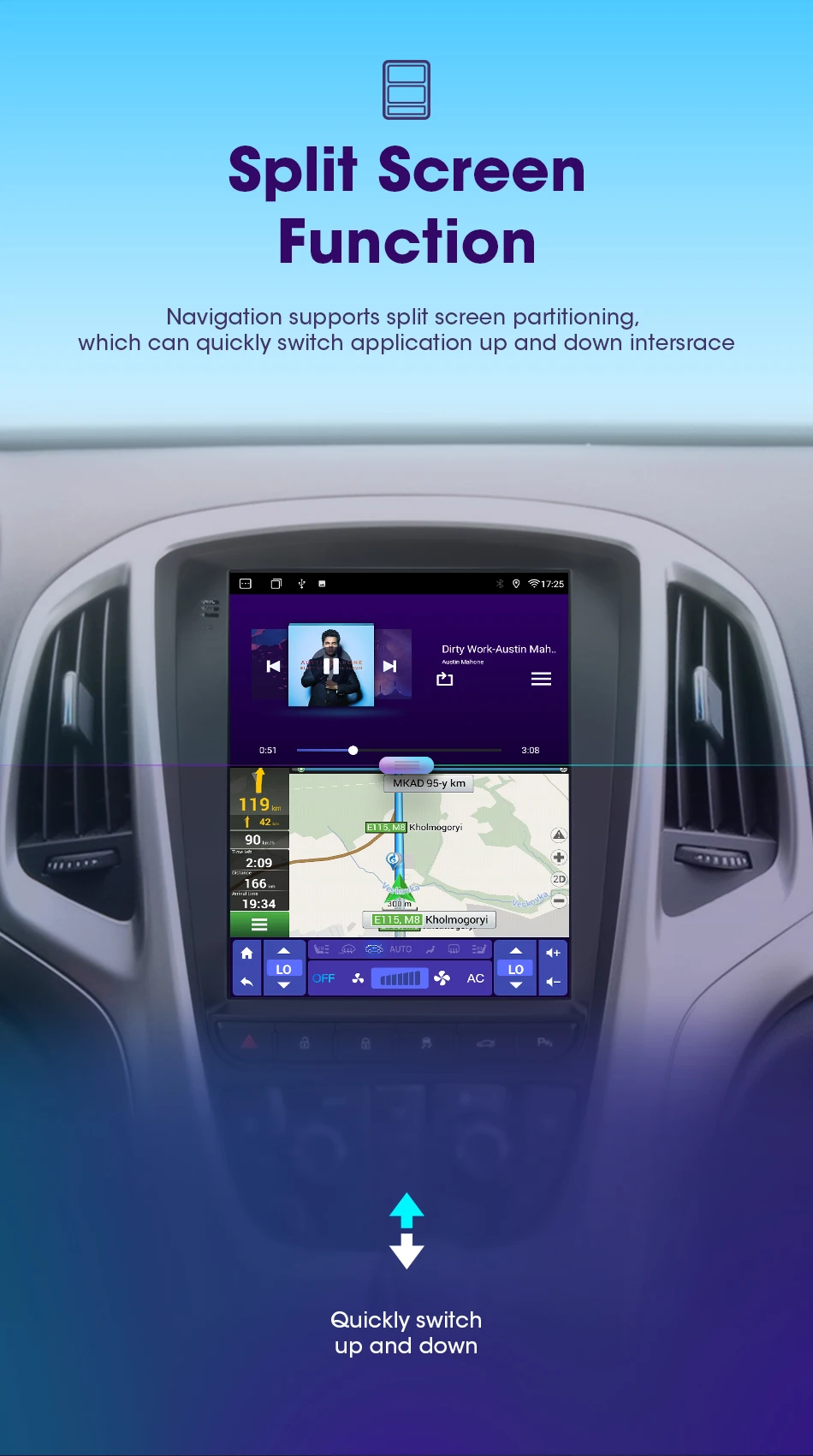 Держите управление рулем оригинального автомобиля, простое управление, безопасное вождение Умное управление кондиционированием воздуха, а также направлением и размером ветра