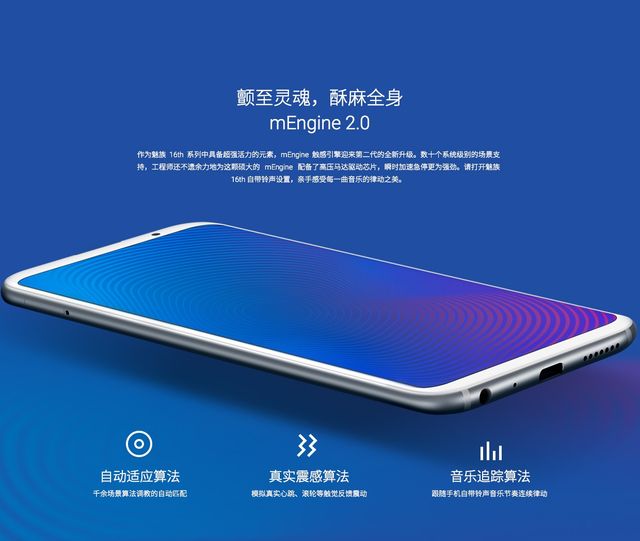 Примітно, що апарат зберіг звичний багатьом користувачам аудіороз’єм 3,5 мм, що розташувався на нижній грані. На додаток до вбудованих стереодинаміків звукові можливості Meizu 16 доповнені підтримкою кодеків Qualcomm aptX і Sony LDAC.