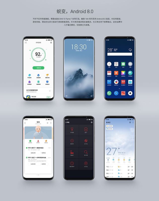 Модель Meizu 16 получит 6-дюймовый дисплей, а 16 Plus станет на половину дюйма крупнее. Смартфоны оборудуют основными камерами на 12 и 20 мегапикселей соответственно, при этом фронтальная камера будут одинаковой на обеих устройствах — 20 мегапикселей. В качестве операционной системы заявлена Android 8.1 Oreo.
