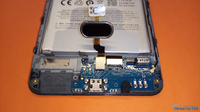 Остаётся только замена кнопки на Meizu M3s. Она крепится под платой на двух винтиках. Остаётся только открутить их и заменить деталь.