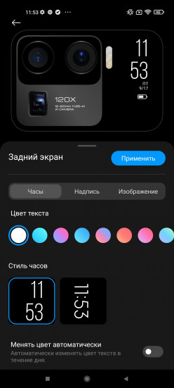 Экран Mi 11 Ultra куда современнее, чем у раскладушек начала 21-го века, ведь мы в 2021-м! Он реагирует на прикосновения, можно увидеть разную информацию, переключить песню и тд. Самое главное — это дата и время, а также заряд батареи.