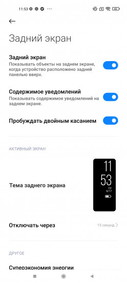 Также, доп. экран можно настроить под себя. Выбрать, что нужно отобразить на нём. Все опции доступны в «Настройках» — раздел «Задний экран».