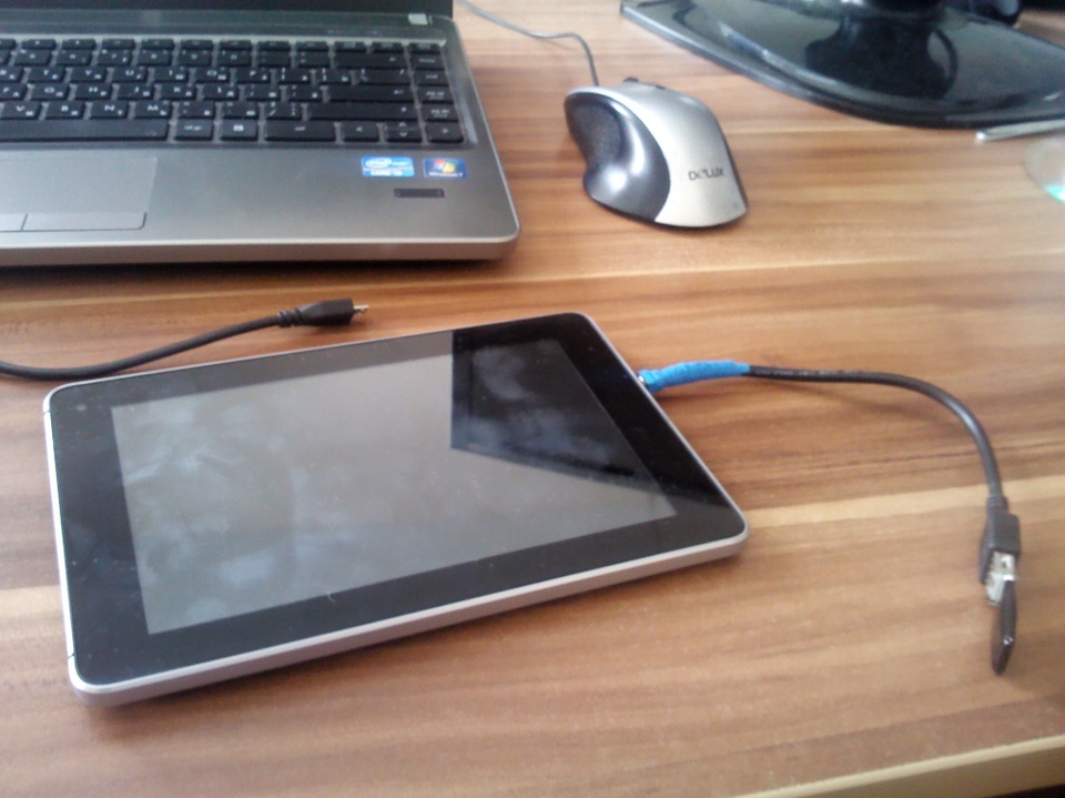Хотел бы поделиться новостями и ощущениями от использования планшета. Одним из факторов, склонивших к покупке, было наличие USB host режима. По-русски говоря — это возможность подключать USB устройства к планшету. Флэшки, диски, клавиатуры, мыши. Еще 3G модемы, но мне это без надобности — встроенный есть. Требовалась самая малость — USB OTG adapter.