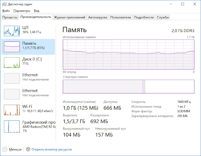 А в случае с 2-х гигабайтным модулем памяти резервируется 295 Мб: