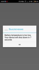 При определённом стечении обстоятельств на экране Xiaomi (Redmi) возникает сообщение о том, что температура аккумулятора слишком низкая, после чего телефон автоматически отключается.