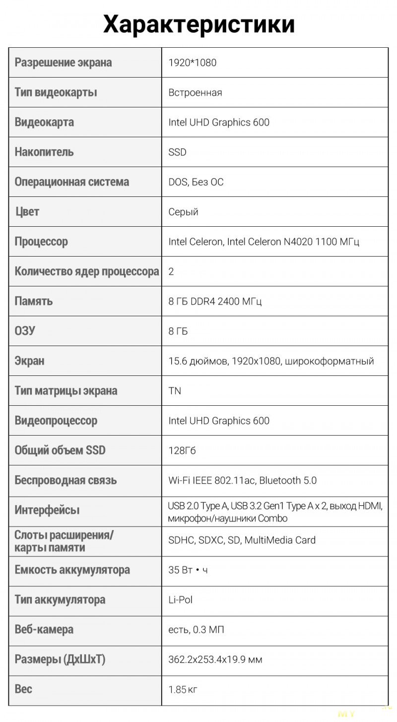 | Процессор | Intel Celeron N4020 1100 МГц |