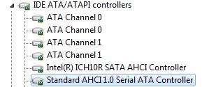 Откройте диспетчер устройств и в разделе IDE ATA/ATAPI контроллеры просмотрите список всех контроллеров. Тут должен быть контроллер с названием AHCI. Если такого нет, попробуйте снова активировать ее в BIOS.