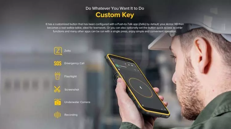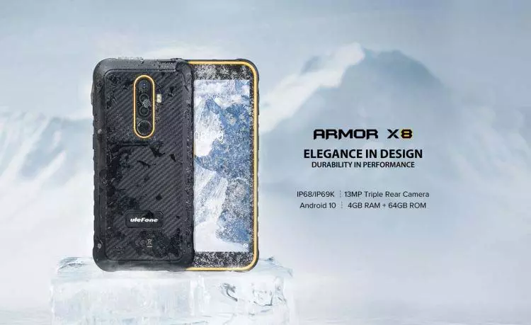 Защищенный телефон Ulefone Armor X8, так же известный как Land Rover, отличается оптимальным соотношением рабочих параметров, качества и цены. В стандартную комплектацию входят: кабель USB, сетевой адаптер, скрепка для SIM карты и инструкция. Недорогой китайский телефон предназначен для длительной автономной работы и обеспечивает связь в широком диапазоне.