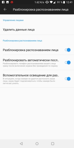 Функция срабатывает мгновенно и почти без ошибок, к тому же — важная деталь — ей можно пользоваться и в полной темноте. Реализовано это остроумно: в настройках разблокировки по лицу есть функция включения вспомогательного освещения. При ее активизации экран будет подсвечиваться белым, освещая лицо и тем самым позволяя смартфону вас узнать.