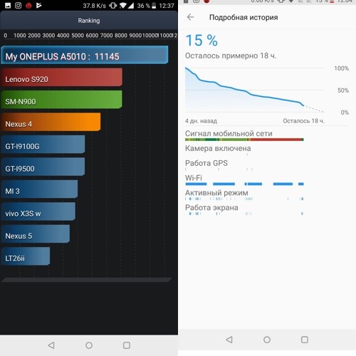 Несмотря на то, что экран стал больше, емкость батареи в OnePlus 5T не увеличилась по сравнению с OnePlus 5. Мне не удалось провести сравнительных тестов, но тем, как держится OnePlus 5T, я осталась очень довольна. Полтора и даже два дня достаточно активной нагрузки (с соцсетями, музыкой и Youtube) ему вполне по плечу