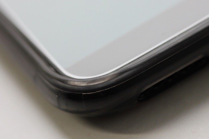 Чехол — вполне достойный — входит в комплект поставки. Он почти незаметен и не портит вид смартфона (и уж точно улучшает сцепку с рукой), но вот что неудачно — это выступающие бортики чехла.
