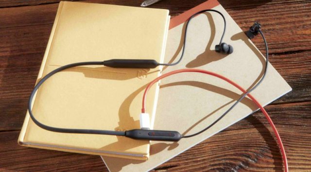 В отличие от большинства современных Bluetooth-наушников, новинка выполнена не в полностью беспроводном форм-факторе, – у нее конструкция с зашейным кабелем, соединяющим «уши».