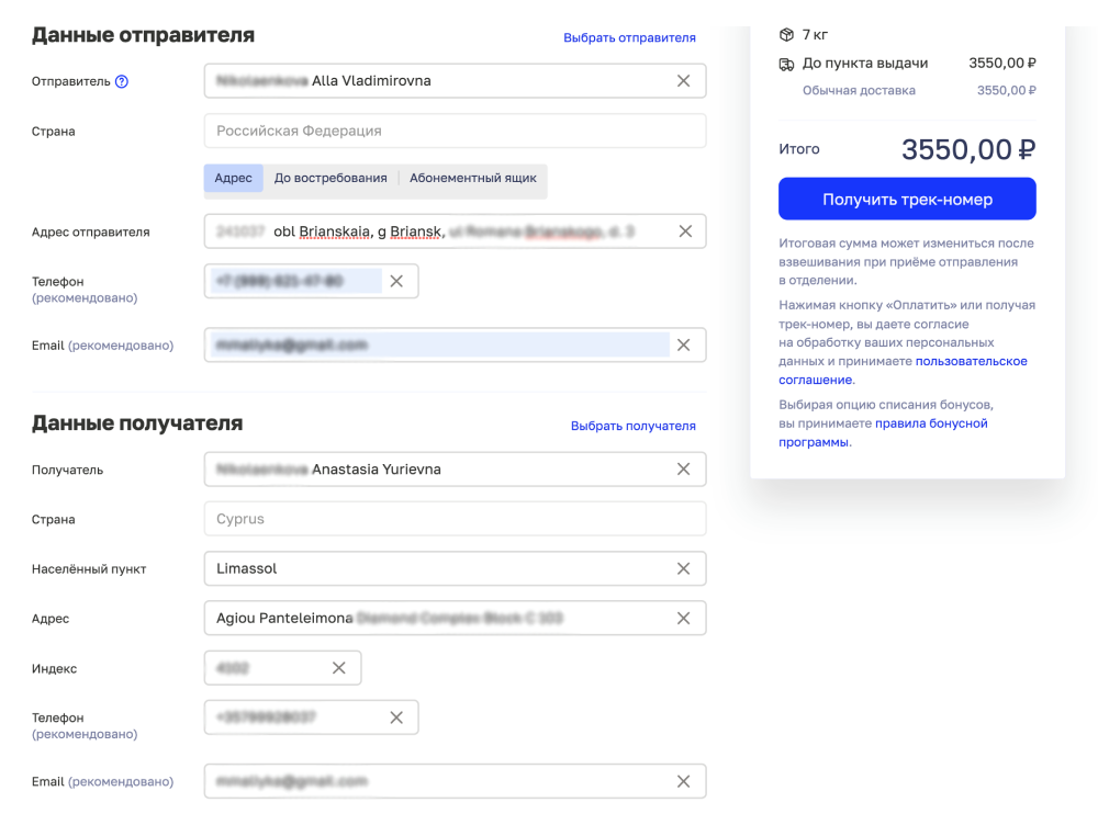 Здесь же увидите ориентировочную стоимость доставки. К примеру, посылка из Брянска на Кипр весом 7 кг и обычной доставкой будет стоить около 3550 Р .