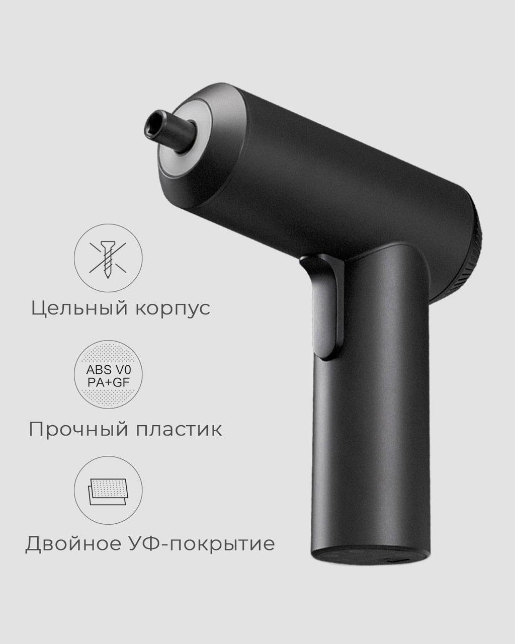На самом корпусе электрической отвёртки Mijia нет крепежных винтов. Все компоненты отлиты из высококачественного пластика и соединены в инновационную конструкцию, которая дополнительно покрыта двумя слоями лака горячей сушки для создания приятной на ощупь фактуры. Отвертка не скользит в руках, не собирает грязь и не боится коррозии.