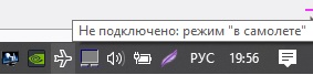 Если включен режим В самолете, то это отражается иконкой самолета в трее.