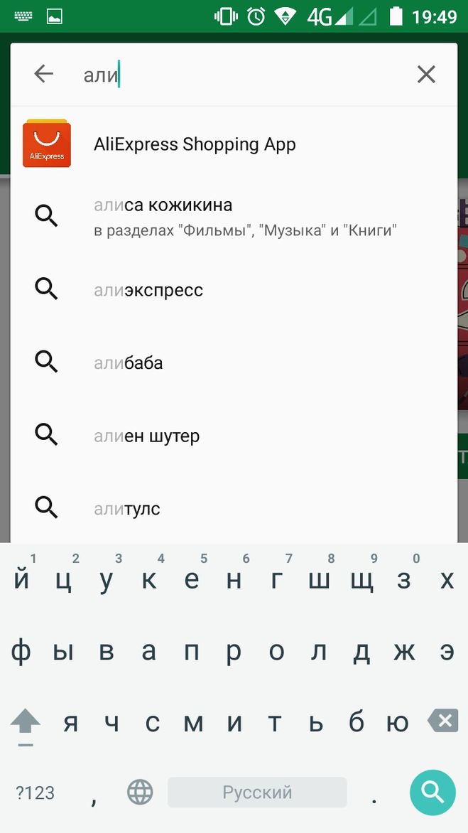Приложение Алиэкспресс выпадает первое. Нажимаем на него и появляется такая картинка