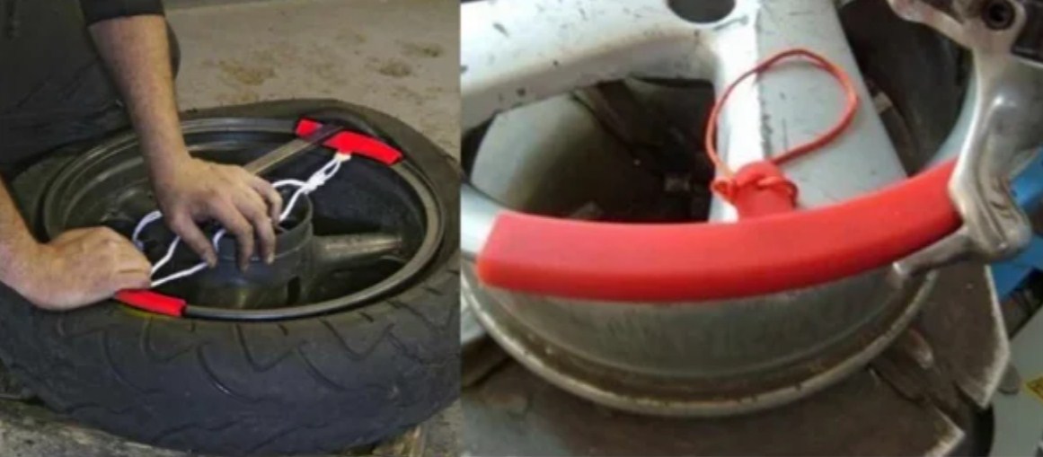 Раньше во избежание таких проблем рабочий инструмент просто обматывали изолентой, но сейчас это можно решить более цивилизованно. Китайцы предлагают в качестве защиты специальные пластиковые накладки. В процессе бортировки они одеваются на край диска и служат безопасным упором для монтировки. Посылка включает 2 штуки бежевого цвета. Кто не пользуется услугами шиномонтажа, тому они обязательно пригодятся!
