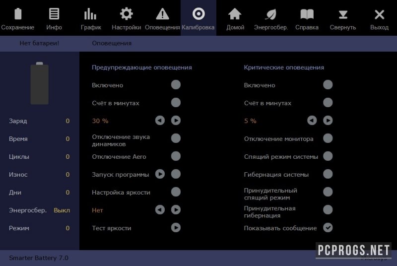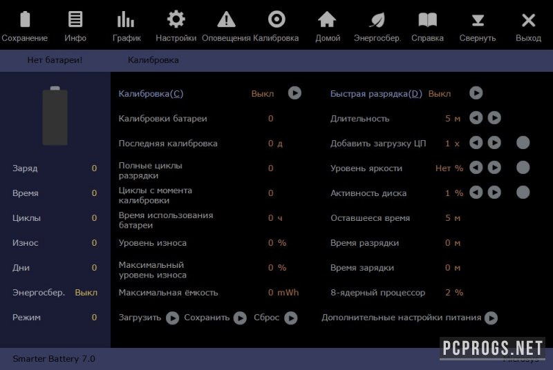 Помимо расширенных возможностей контроля и мониторинга состояния батареи ноутбука или нетбука, крякнутый Smarter Battery отображает подробную техническую информацию (текущий заряд, степень износа, режим работы, скорость зарядки, температуру, ёмкость и т.д.), а также позволяет проводить калибровку.