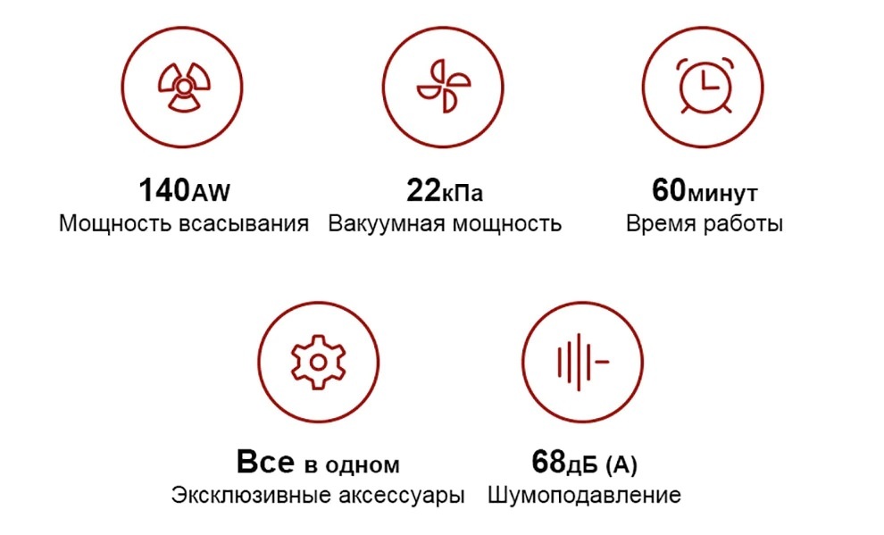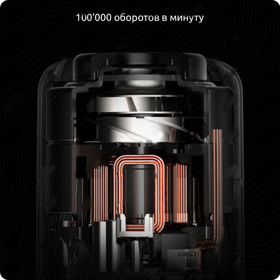 Скорость работы электродвигателя составляет 100 000 оборотов в минуту, мощность всасывания – 140 аВт, за счет чего обеспечивается быстрый сбор пыли и грязи.