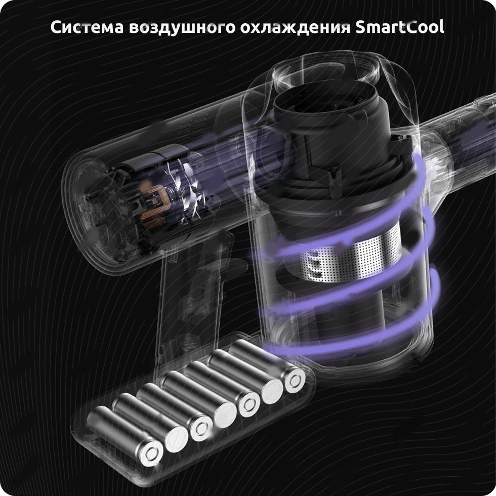 Уникальная система воздушного охлаждения SmartCool поддерживает нормальную работу пылесоса и направляет поток воздуха на аккумулятор, чтобы его охладить, что увеличивает продолжительность работы. Аккумулятор прослужит долго, очень долго.