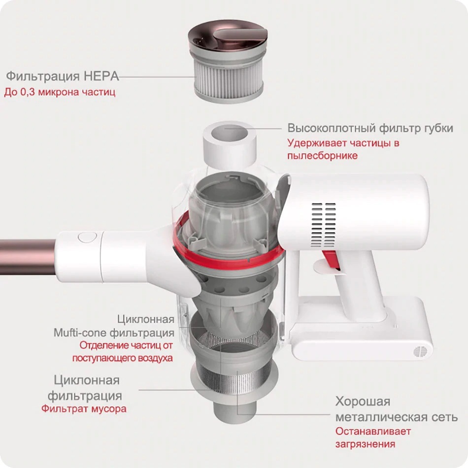 Пылесос спроектирован для облегчения уборки в самых непростых условиях Вашей квартиры. Премиальные материалы и встроенная мощная батарея рассчитаны на то, чтобы пылесос служил долго!