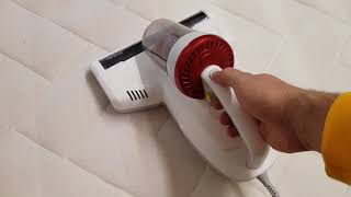 Отзыв: Брал для матрасов и велюрового дивана. Моё мнение лучше бы взял мощный пылесос. А это просто электровеник, слабая мощность, в углы дивана не засунуть. Но из матрасов пыль в виде муки выбивает….