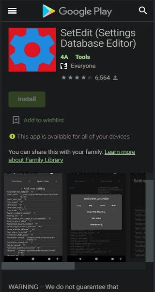 Чтобы включить эти функции, вам необходимо загрузить приложение SetEdit из Google Play Store.
