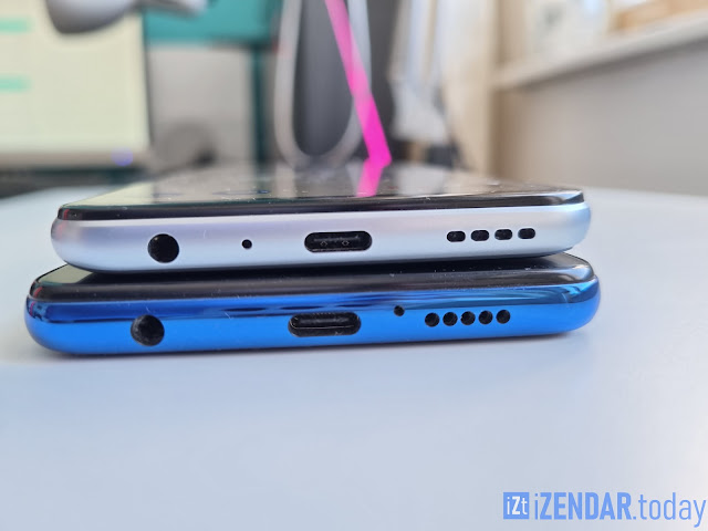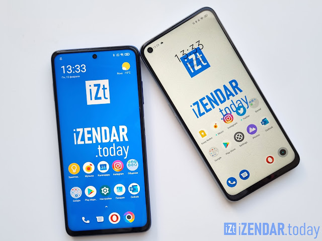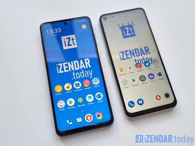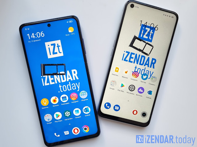 Ещё можно заметить, что фронтальная камера у POCO в центре, а у realme сдвинута в угол.