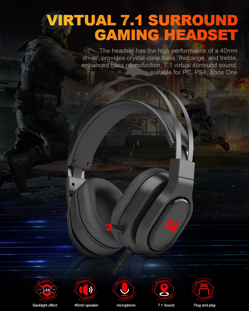 Redragon игровых гарнитур высокой эффективности с 40-миллиметровые драйверы, обеспечивает кристально чистым звучанием обеспечивает минимумов, средние, высокие частоты звуки, расширенного воспроизведения низких частот, с 7,1 виртуальный объемный звук, работает с ПК, для PS4, для Xbox One