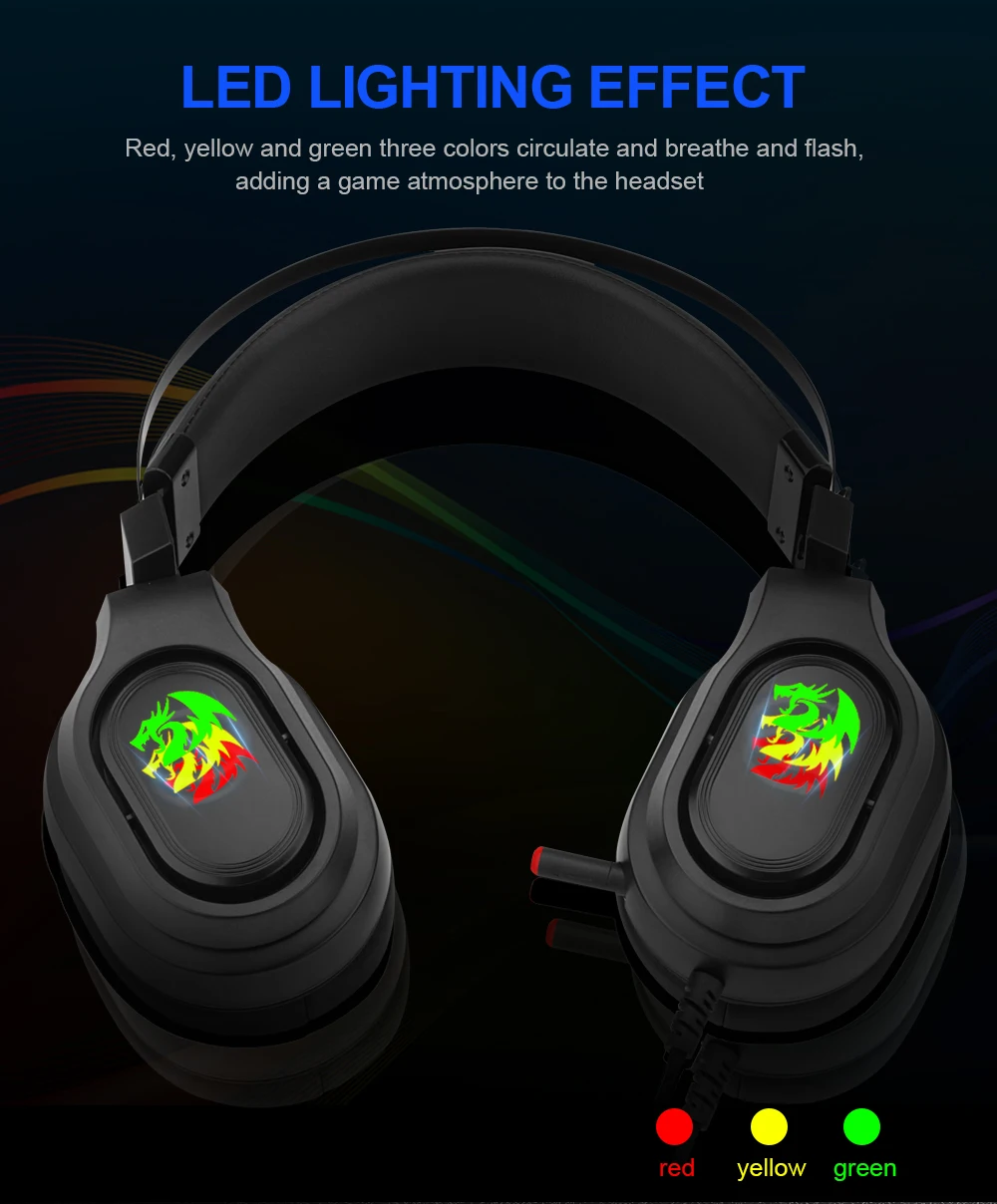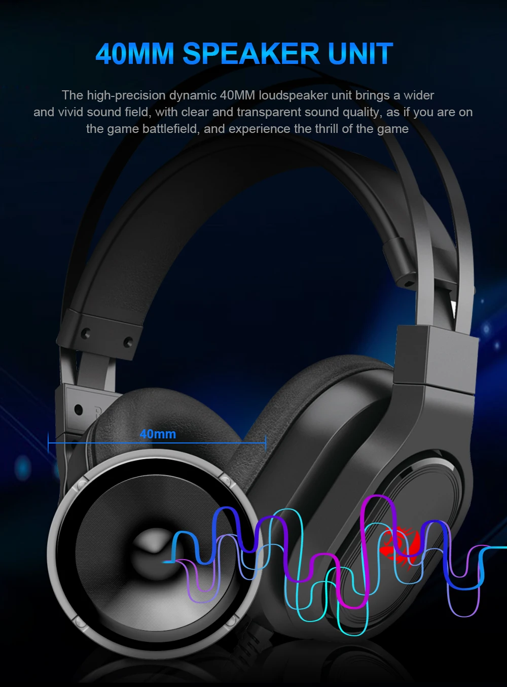 Кристально чистый чат и светодиодный светильникИсточники звука 360 градусов поглощают скрытый микрофон, поднимает ваш голос громким и чистым. Идеально подходит для игр и онлайн-чатов. Светодиодный светильник с логотипом beathing сделает вашу гарнитуру потрясающей и круче.