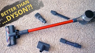 Хуже продумана система опорожнения контейнера, у Дайсона она удобнее.Зато долго держит заряд даже на самом мощном режиме, меньше чищу щетки после работы и стоит в два раза дешевле.За свою стоимость он Дайсону вообще не конкурент!
