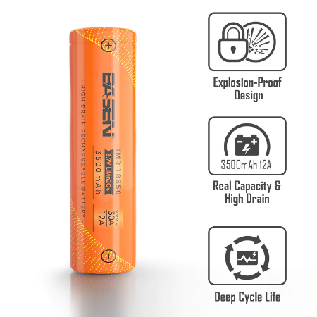 BASEN O35 это хорошие высокоёмкие аккумуляторы, у которых вполне приличная и токоотдача. При заявленных 3500 мАч и 30A они по факту выдают до 15А и ёмкость 3500 мАч. Подойдут для устройств, где нет требования к большой токотдаче, но есть потребность в длительной работе.