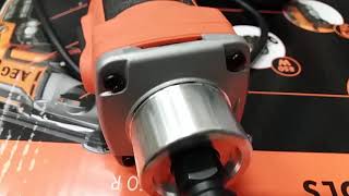 - Особенности: максимальный диаметр шлифовальной головки 38 мм, цанга 3-8 мм