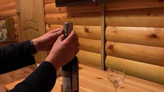 Как только винт начинает вращаться, он сам ввинчивается в пробку до упора и вытягивает его из бутылки в прозрачную гильзу. Пользователь должен держать устройство в вертикальном положении: