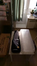 Основной причиной выбора этого продавца была отправка полного комплекта. Но продавец сэкономил на упаковке. на фото видно, что внутренняя упаковка прихвачена скотчем в двух местах. В результате раздавлена крышка чехла в верхней части где колки. Повезло, что сама скрипка не пострадала. Продавец ответила: печалька, бывает.