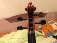 У скрипки вполне качественный и сочный звук, хотя еще и мало разыграна. Колки подогнали при помощи мела, строй держит неплохо