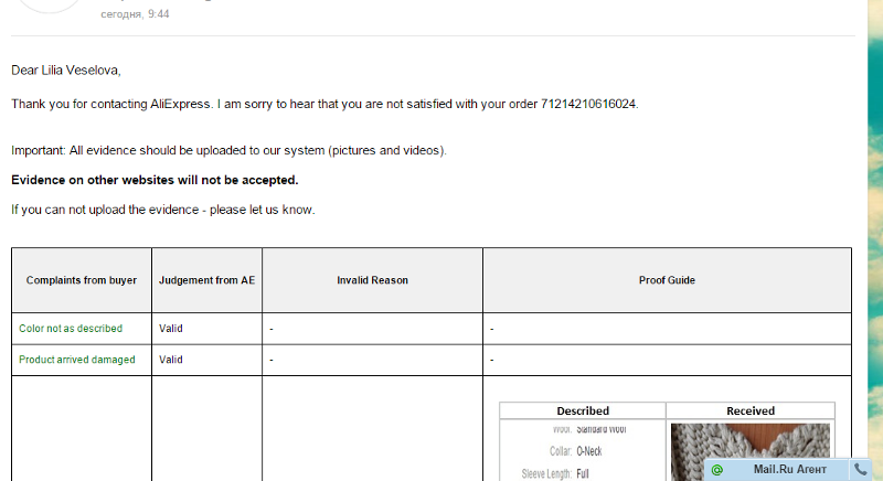 До момента завершения очередной сделки деньги остаются на счете фирмы, поэтому в конфликтных ситуациях она становится арбитром. Работы у сотрудников Алиэкспресс много, решения они принимают, основываясь на сведениях, которые получают, когда покупатель обострил спор.