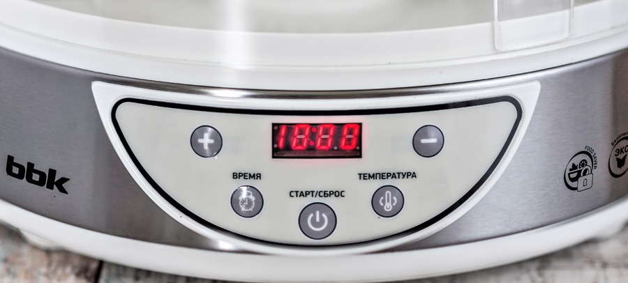 Когда время программы заканчивается, сушилка отключается автоматически. А вот если во время программы нажать на кнопку старт – отключения не происходит, нужно вынимать вилку из розетки. Но вот во время готовки можно изменить время программы и температуру, что будет удобно особенно на первых порах, пока хозяйка недостаточно опытна.