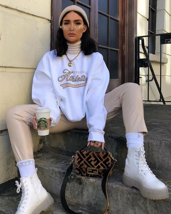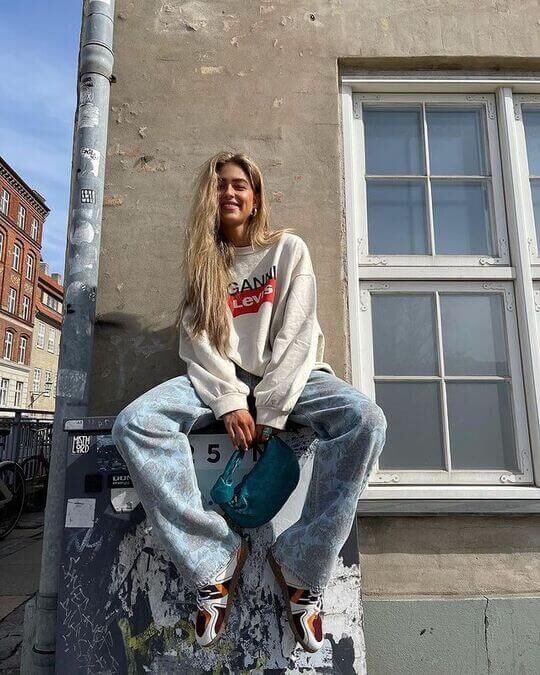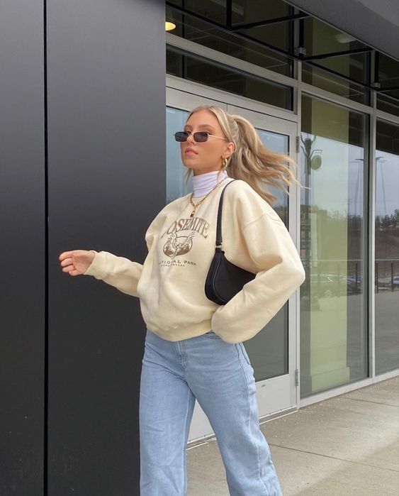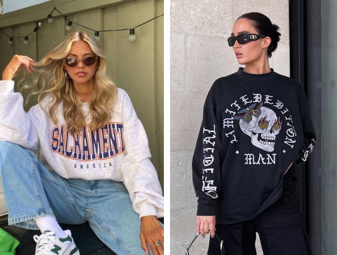 Женские оверсайз свитшоты смотрятся стильно — не зря их обожала принцесса Диана. Она, кстати, искусно сочетала спортивный верх с разноцветными велосипедками, юбками в клетку, базовыми джинсами и жакетами. Для повседневных образов подойдут универсальные оверсайз модели. Единственный минус: без дополнительных аксессуаров и акцентов они могут выглядеть простовато. Гиперобъемные варианты за счет кроя сделают образ ярким и заметным, даже если вы наденете их с простыми прямыми джинсами и белоснежными кроссовками.
