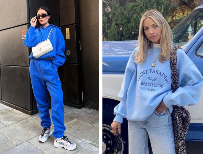 Эти цвета можно смело назвать одними из ключевых 2023 года. Особенно актуальны оттенки Blue Perennial (Голубой многолетник), Riverside (Берег реки), Summer Song (Летняя песня), Skylight (Свет неба) и Airy Blue (Воздушно-голубой). Кроме того, на пике популярности окажется деним — вот с ним-то худи и свитшоты голубых тонов смотрятся как нельзя гармоничнее.